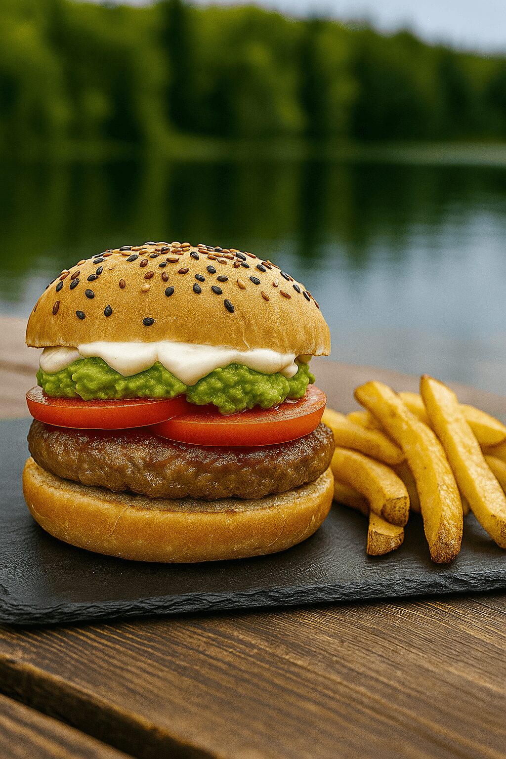 Inspirada en la clásica combinación chilena, la Italiana lleva tomate fresco, palta y mayonesa Kraft sobre carne 100% vacuno. Perfecta para quienes prefieren una hamburguesa sin queso pero llena de sabor. Ideal para almuerzos en el Lago Vichuquén. Incluye papas.