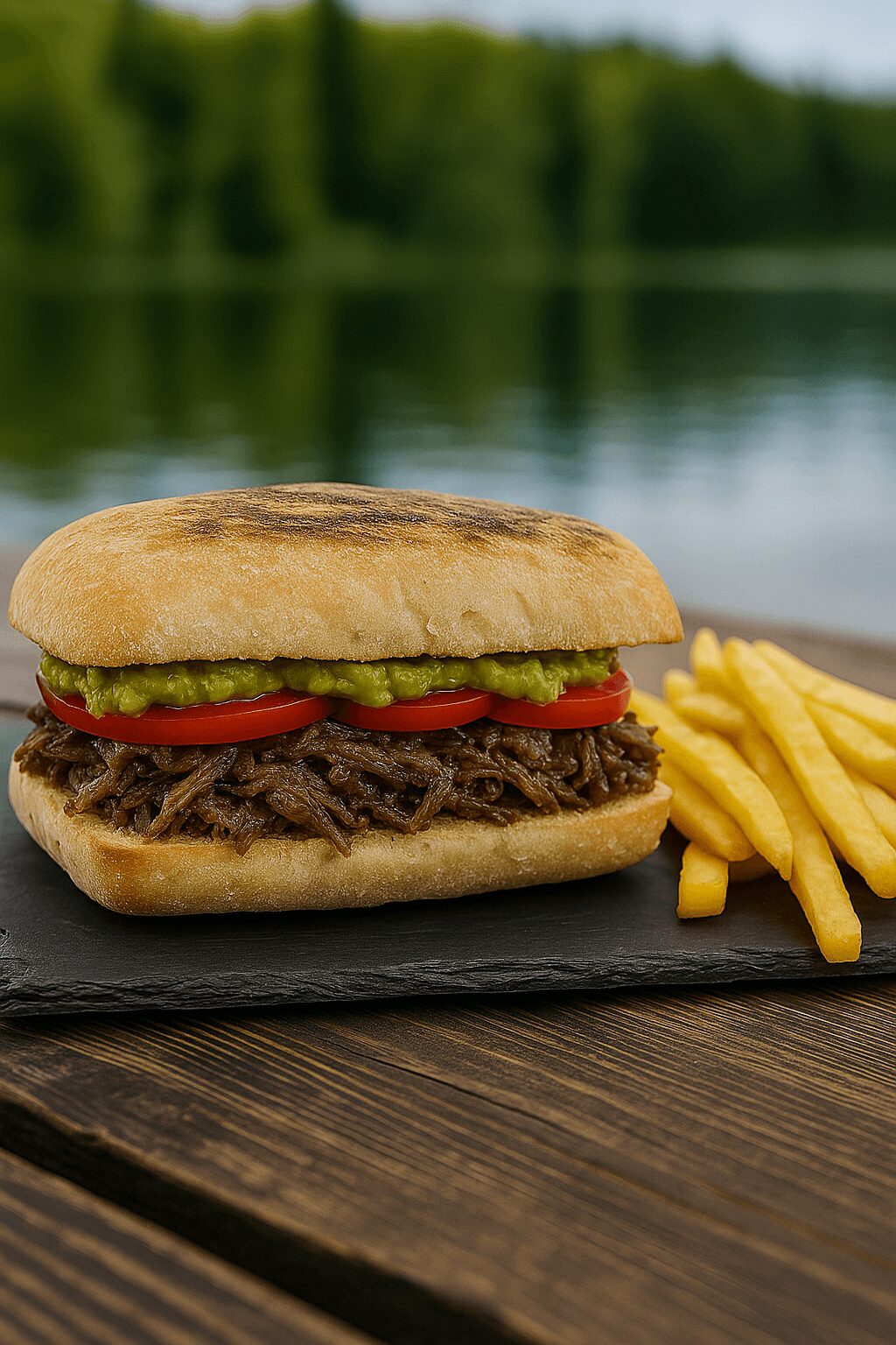 Nuestra Mechada Italiana es una opción fresca y sabrosa. Con carne mechada, tomate, palta cremosa y mayonesa Kraft sobre pan ciabatta. Una excelente alternativa para quienes buscan almuerzos en el Lago Vichuquén con sabor chileno.